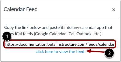 日历 iCal 馈送位于日历侧栏内。您可以把 iCal 馈送导入至任何接受 iCal 格式的日历应用程序内,例如 Google 日历、, Apple 日历、Outlook, 和 Yahoo 日历。您也可以把日历馈送下载为 ICS 文件。日历馈送将包含您LMS日历中的所有活动和作业。