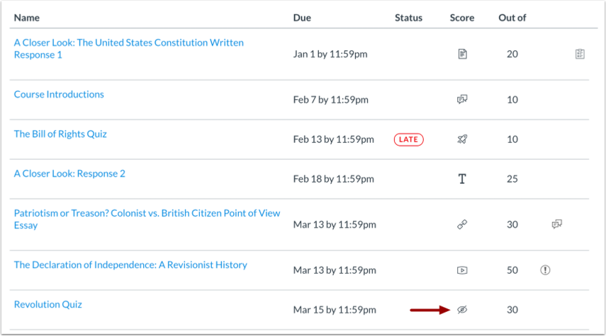 作为学生,您可基于假定评分查看成绩,并知道未来或重新提交的作业将如何影响您的成绩。您可为一个评分作业或一个已被评改的作业假定分数。