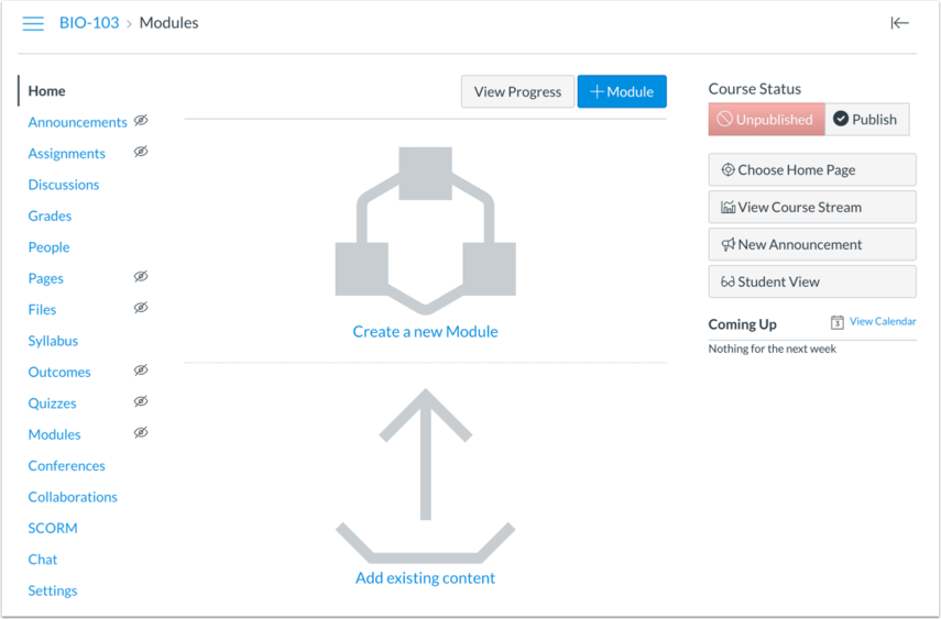 在控制面板的侧栏,点击开始新课程 (Start a New Course) 按钮。您可能需要向下滚动才能看见此按钮。