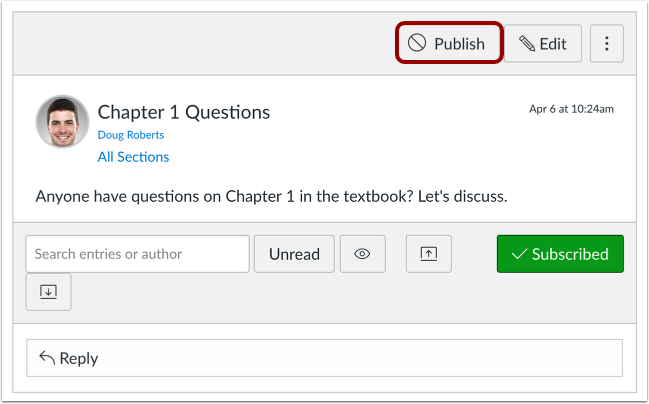 当您的讨论被保存在草稿状态时,您可返回到页面,并随时点击发布 (Publish) 图标发布讨论。